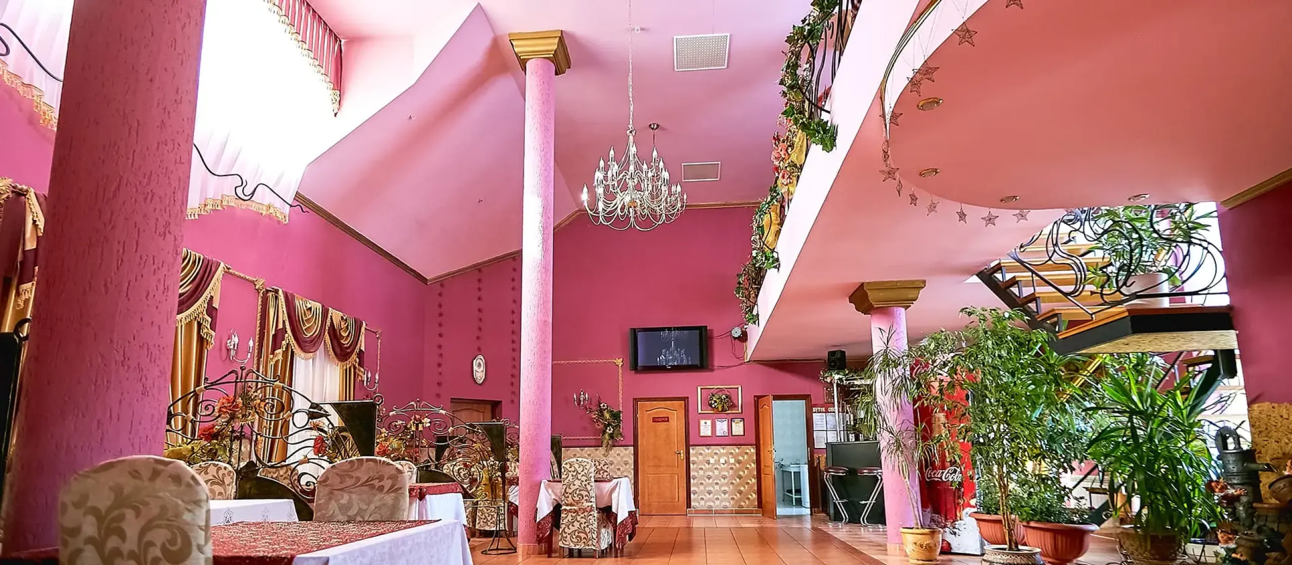 Вишуканий та гармонійно облаштований інтер’єр ресторану, жива музика створюють затишну атмосферу для Вашого відпочинку.